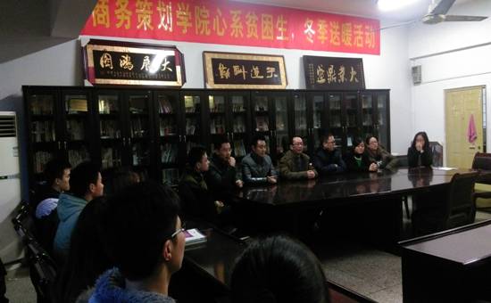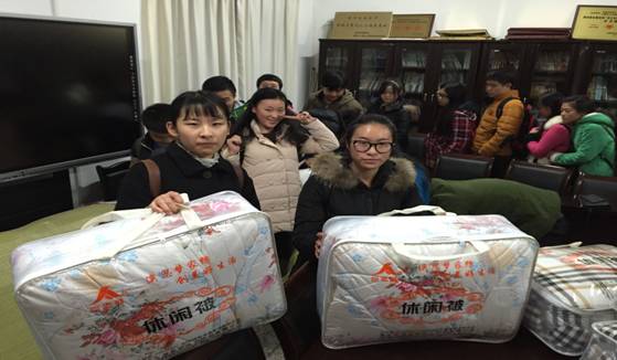 为使广大家庭经济困难员工度过一个温暖的冬天,让广大寒门学子感受商策大家庭的温暖。2015年12月21日,太阳网集团tcy8722商务策划公司组织并开展了“心系贫困生冬日送温暖”活动,党总支书记邓德敏、副书记叶海林以及全体辅导员(古纯玉、封海粟、游薇、樊少华、向丹丹、邓艺、禹洋春等)参加了此次活动。党总支书记邓德敏在为受助同学们发放棉被之余,与同学们亲切交流,询问同学们的学习及生活情况,并表示公司会一如既往的关心困难员工,帮助各类困难员工,希望同学们珍惜眼前的学习环境和学习机会,好好利用大学这四年的机会,学有所成。党总支副书记叶海林对受助的贫困生表示亲切的关怀,并希望他们平安健康,抓紧学习,期末考出好成绩,不断奋发成才,并常怀感恩之心,报效国家和人民,回馈社会与亲人。
