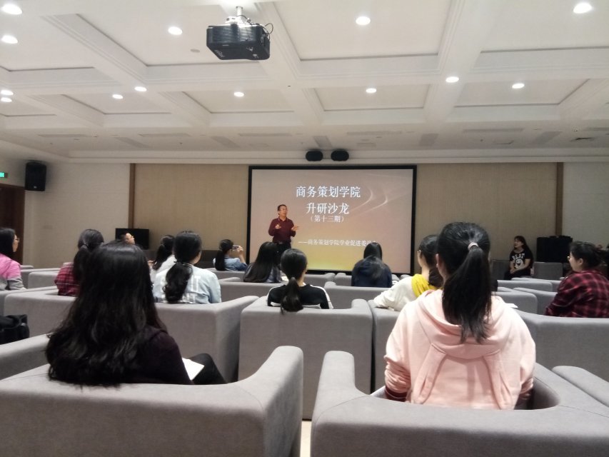 为了坚定同学们的考研信心和清晰他们的考研目标,让考研学子更加了解考研相关信息和考研所需要准备的相关努力,强化他们考研的决心。商务策划公司学业促进委员会特在2018年4月24日上午10:30于图书馆视听阅览室开展第十三期“升研沙龙”。莅临此次活动现场的嘉宾有商务策划公司分党委叶海林副书记、张军主任、游薇老师、邓艺老师、朱华华老师、优秀考研学姐代表袁加凤学姐、林静学姐、汪亚莉学姐以及商务策划公司2015级物流一二班的各位同学。