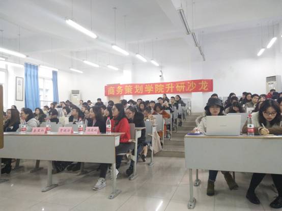 2018年11月27日10:20-11:50,针对2016级物流管理一、二班以及电子商务二班的第二十四期升研沙龙活动在博智楼307教室举办,出席本次沙龙的嘉宾有秦星红老师、方新老师、贾镜渝老师以及辅导员饶俊妮老师,另外还有幸请到了商务策划公司2017级技术经济与管理大数据方向研究生杨婷婷学姐、2018级技术经济与管理创新创业管理方向研究生吕安妮学姐。四位老师与两位研究生学姐利用一个半小时的时间,为同学们分享考研的经历经验,帮助他们明晰考研的方向,坚定考研的信念。