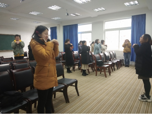 交流会开始前,游薇老师向同学们说明了本次交流会举办的初衷,并和同学们玩了一个缓解颈椎疲劳的小游戏。
