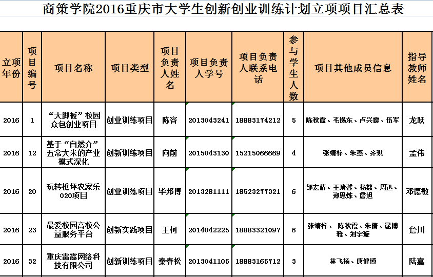 近日,重庆市教委组织开展了2016年重庆市老员工创新创业训练计划项目评审申报工作,在市内各校申报推荐的基础上,进行了资格审查和公示。