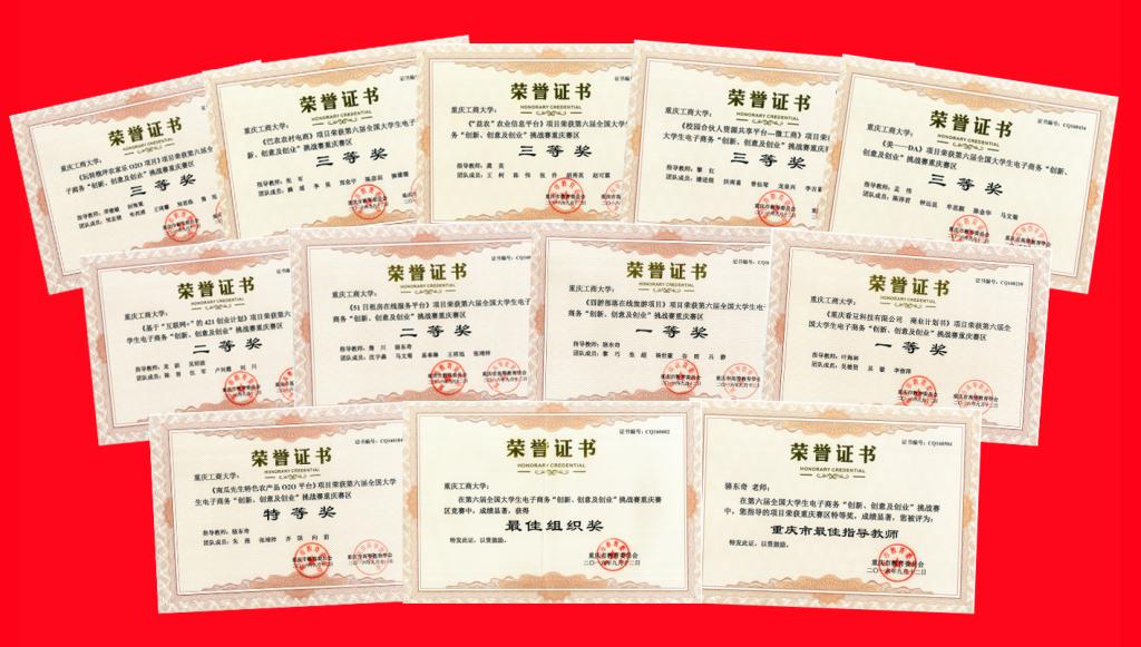 在此之前的第六届老员工电子商务“创新、创意及创业”挑战赛重庆赛区竞赛中,公司10支参赛团队共夺得1个特等奖、2个一等奖、2个二等奖和5个三等奖。公司作为第六届老员工电子商务“创新、创意及创业”挑战赛校内选拔赛的组织单位获得重庆市教委授予的最佳组织奖。