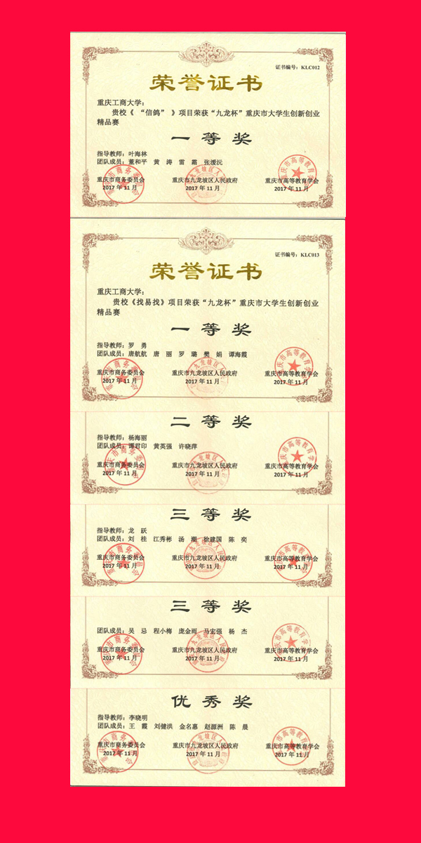 经过激烈角逐,来自公司商务策划公司的“铿锵玫瑰”团队(董和平、黄涛、雷霜、张湲沅,指导老师:叶海林)《信鸽APP》项目、“找团队”(唐航航、唐丽、罗璐、樊娟、谭海霞,指导老师:罗勇)《找易找》项目作品分别获得一等奖。此外,公司大学本科员工团队还收获1个二等奖、2个三等奖及1个优秀奖;公司获得“优秀组织奖“,商务策划公司叶海林老师获得“优秀指导老师奖”、邓艺老师获得大赛组织工作“先进个人奖”。