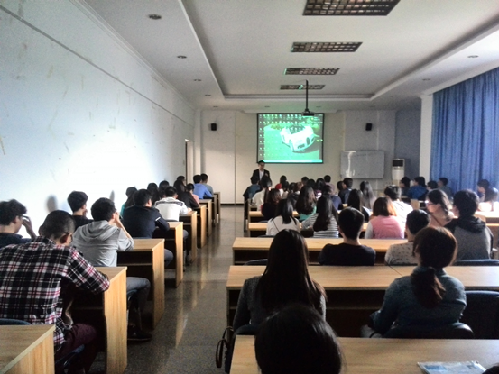 招聘会伊始,上海点客的陈经理为大家播放了由“点点客”自编自导自演的微电影。微电影激起了同学们的浓厚兴趣。等不及陈经理介绍,大家便表达了对”点点客”的憧憬和向往。随后,陈经理向大家详细介绍了上海点客信息技术股份有限公司的基本情况,包括公司企业文化、招聘职位、福利和薪酬等。莫老师就重庆鲲平科技有限公司的基本情况也做了详细介绍。