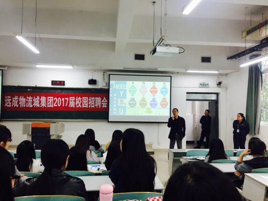 为了给商务策划公司2017届毕业生提供更好的就业,帮助企业寻找合适的人才,2016年10月19日上午十点整,远成物流集团来公司于七教07121教室进行了校园宣讲会。商务策划公司大四毕业生们积极参加了此次招聘会。
