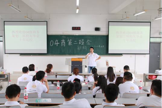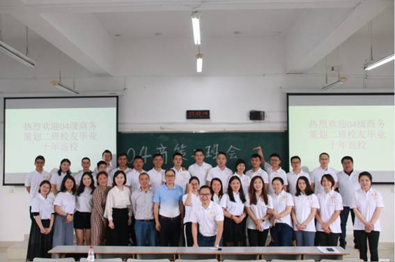 十年重聚商策情。2018年5月12日星期六,商务策划公司2004级商务策划专业二班的二十余名员工于博智楼07406举办了一场与众不同的主题班会,分党委书记邓德敏、经理骆东奇、原商策党总支书记王小玲也格外关注并亲身参与了这次员工返校主题班会。