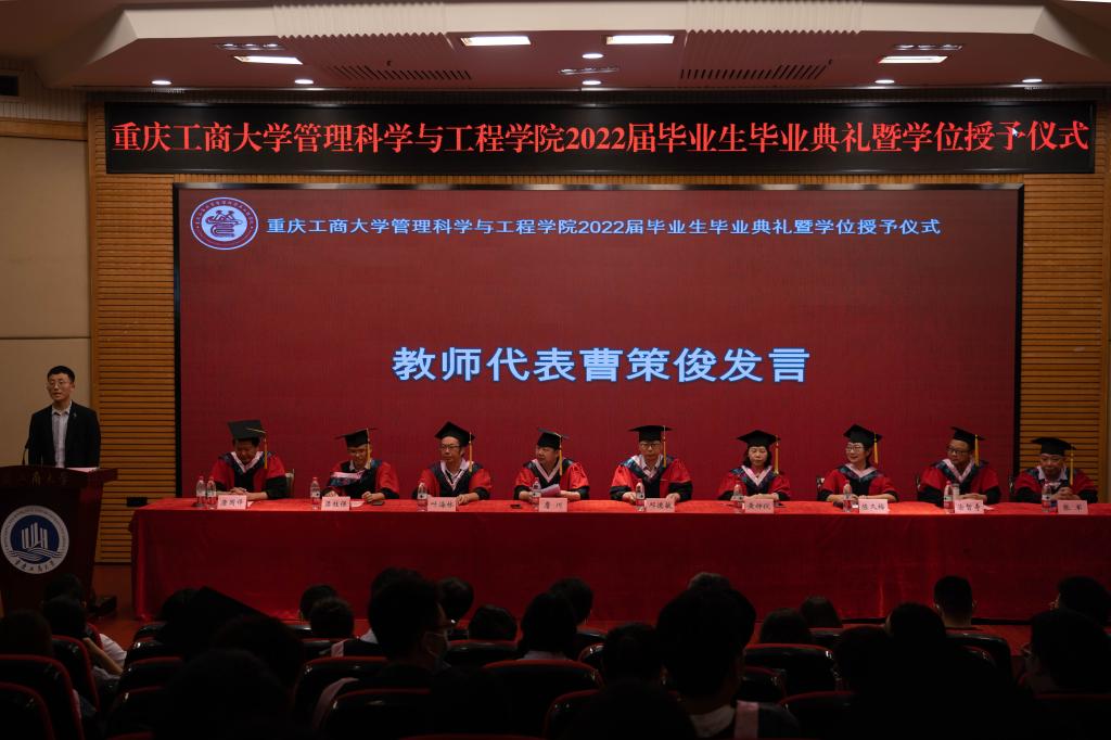 6月18日上午,太阳网集团tcy87222022届毕业生毕业典礼暨学位授予仪式在博智楼7200举行。管理科学工程公司全体班子成员、各系主任、毕业班辅导员、教师代表、家长代表、员工代表及研究生、本科毕业生等共计280余名出席典礼。公司副经理陈久梅主持典礼。