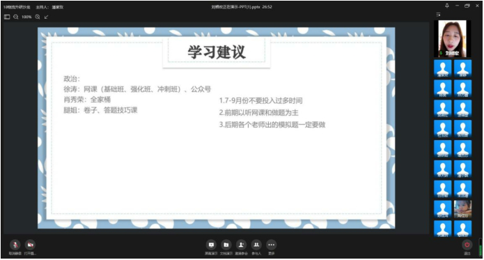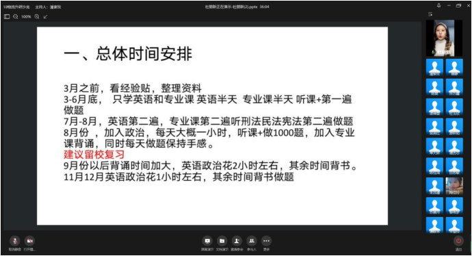 杜丽新推荐了一些学习资料的获取方法,并分享了她的时间安排,建议18物流学子留校复习。同时也在英语和政治的学习上给出了自己的建议。