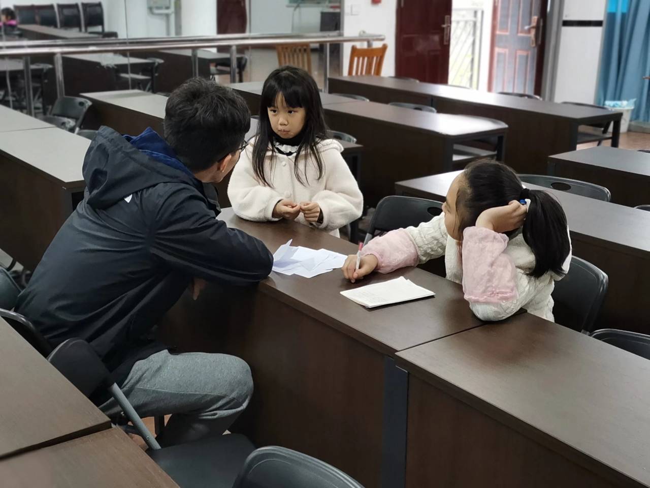 上午10点,活动正式开始。首先,由志愿者带领小朋友进行手语操的学习,小朋友们十分积极地参与其中,这给他们带来欢乐的同时也培养了他们的学习主动性与积极性。紧接着,志愿者引导小朋友们就坐,为他们分享抗疫期间的感动小故事,志愿者们声情并茂的演讲把小朋友们带入情节当中,小朋友们也积极与志愿者互动,和志愿者共同领会故事中那些人物无私奉献的精神、感受祖国力量的强大。最后,小朋友们与志愿者合影留念,志愿者在小朋友们不舍的挽留中和他们一一道别。