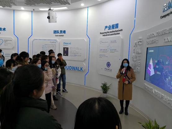 同学们于15:00准时到达数字经济产业园照母山研创核心区,在产业园和云从科技工作人员的带领之下分别参观了两江数字经济产业园、重庆中科云从科技公司的展厅以及园区环境。工作人员详细介绍了产业园空间、功能布局和基础情况,并展示了园区重点产业平台、代表企业成果等,同学们也亲身体验了一站式自助服务平台,在惊叹科技发展迅猛之余,也为园区取得的成果感到震撼和骄傲。园区展厅参观之后,同学们更为云从科技在智慧经济领域取得的成绩所折服,从3D建模、智慧交通应用再到医疗资源调用,每一项高科技成就增添了同学们对未来就业的憧憬与向往。本次认知实习也在同学们对科技发展与自身就业的讨论声中圆满结束。