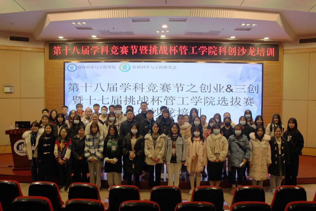 在培训结束后,各参赛队伍积极提问,就评分标准、比赛的侧重点、怎样让作品更出彩、效果如何展现等问题对老师进行了提问,龙跃老师也针对同学们不同的疑问做出了详细的回答。同学们在得到老师的解答后一定颇有收获。最后参与此次活动的老师、同学以及工作人员合影留恋,至此,此次创业&三创暨第十七届挑战杯管工公司选拔赛科创沙龙活动圆满落下帷幕。