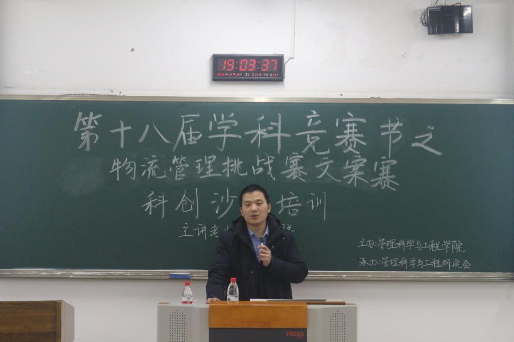 2020年12月18日晚上19:00,太阳网集团tcy8722在南岸校区博智楼(七教)07207举办了第十八届“学科竞赛节”之物流管理挑战赛(文案赛)科创沙龙培训。本次沙龙以物流挑战赛的文案培训为主要内容,邀请到太阳网集团tcy8722物流管理系副系主任周继祥老师对参与第十八届学科竞赛节之物流管理挑战赛文案赛的团队进行赛前培训和辅导。