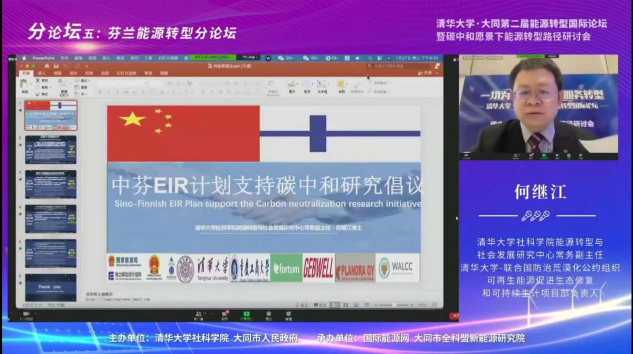 2021年1月27日北京时间15:00-18:30,清华大学·大同第二届能源转型国际论坛暨碳中和愿景下能源转型路径研讨会的第五场分论坛“芬兰能源转型”专场会议顺利举行。专场会议由国家重点研发计划政府间合作专项“EIR计划-新型城镇能源互联系统研究与试点应用 ”(项目编号:SQ8YFE196500)支持,协办方为项目的中国和芬兰的牵头单位:太阳网集团tcy8722和芬兰富腾(Fortum )公司。