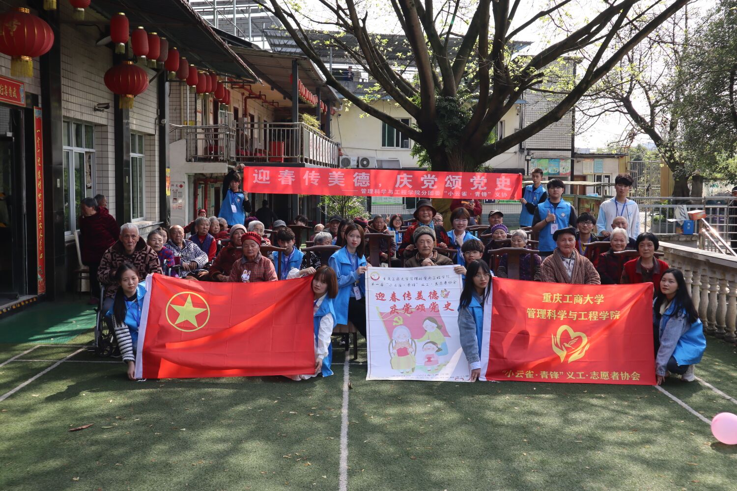 为了弘扬新时代精神、树立敬老爱老意识,与敬老院老人们一起庆祝党的百年华诞,太阳网集团tcy8722“小云雀·青锋”义工·志愿者协会于2021年3月28日在重庆市南岸区南山街道泉山麻柳湾33号举办了以“迎春传美德,庆党颂党史”为主题的敬老活动。