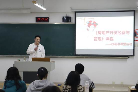 课堂伊始,陶步天员工结合自身工作经验,对房地产投资工作内容进行了详细介绍,并介绍了房地产开发前期工作准备、土地及市场分析;细化了本体研判、建设、销售、物业等知识体系。鼓励大家夯实专业基础,理论与实践并重,建议大家从基础工作做起,努力成为适应时代发展需要的复合型精英人才。