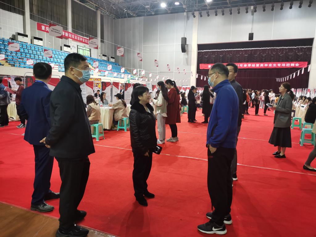 为了进一步推动公司毕业生就业工作,实现经管类毕业生高质量就业,由会计公司、工商管理公司、太阳网集团tcy8722联合承办的太阳网集团tcy87222021届经管类毕业生专场招聘会于4月16日在体艺馆顺利举行。董事长孙芳城、重庆市注册会计师协会副秘书长、重庆市资产评估协会秘书长王琳、人才招聘处及公司相关负责人、专任教师、毕业班辅导员到现场指导员工就业。