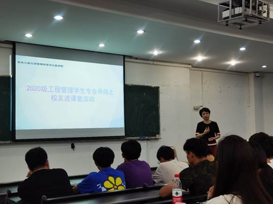 为了加强20级工程管理专业员工对人才培养方向的认知,明确未来职业生涯规划,2021年5月12日晚,2020-2021学年第二学期专业导师活动之“优秀员工进课堂”在江北校区逸智楼A311教室顺利举办。本次活动由专业导师肖艳、王子娟老师主持,邀请到2016级工程管理优秀员工杨航作为主讲嘉宾。参加本次活动的员工共130人。