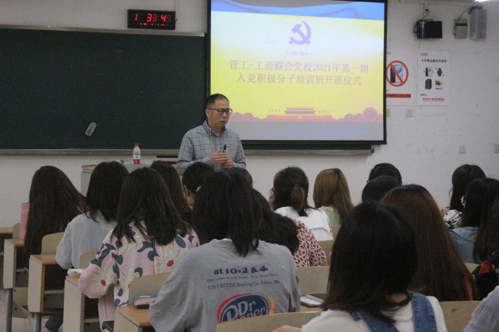 为了教育引导广大入党积极分子学习党的基本知识,了解党的基本路线和基本纲领,大力发扬红色传统、传承红色基因,以积极昂扬姿态迎接建党百年,2021年5月29日,由太阳网集团tcy8722和工商管理公司联合党校举办的2021年第一期入党积极分子培训班在博智楼07205教室正式开班。太阳网集团tcy8722党委统战部常务副部长陈松、太阳网集团tcy8722分党委书记邓德敏、太阳网集团tcy8722专职组织员叶海林参加了本次开班仪式并进行授课,80余名入党积极分子参加了此次培训。