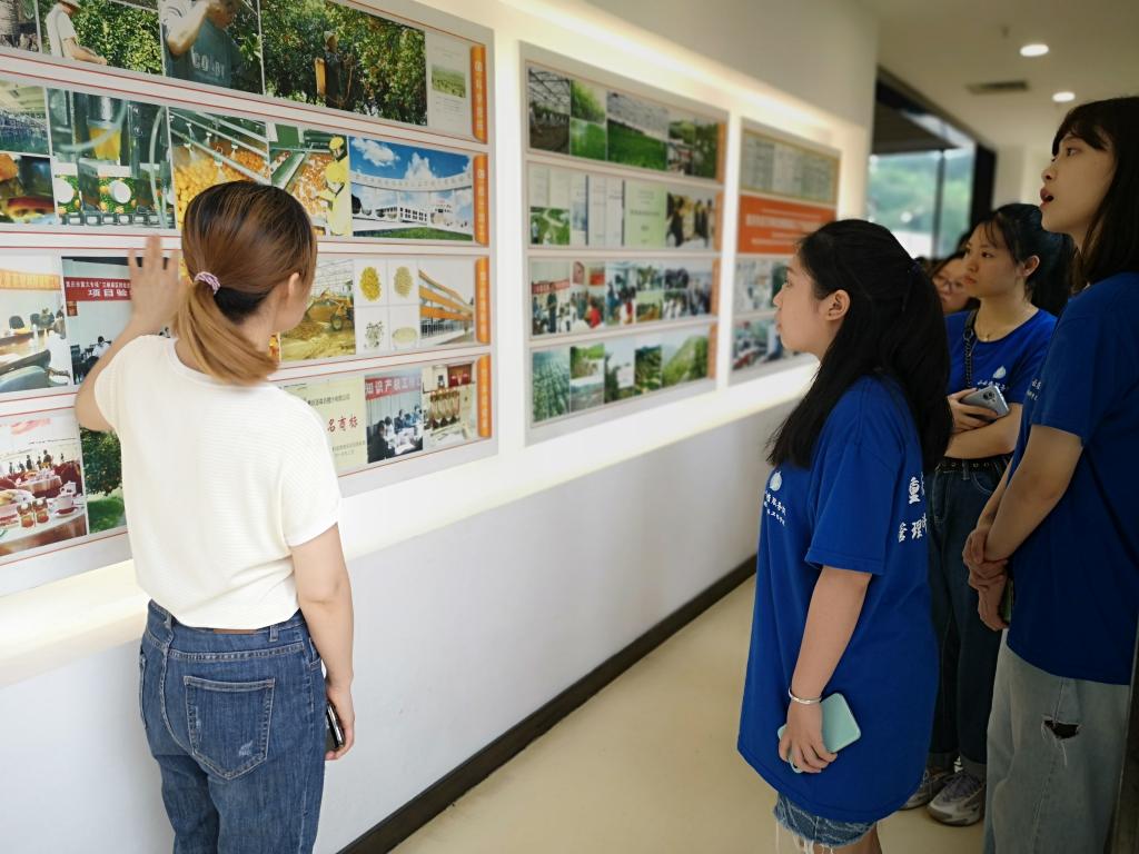 小云雀实践团一行还深入橘树环绕的重庆派森百橙汁有限公司调研学习。作为现代农业龙头企业,派森百从产地、品种、管抚、工艺、包装、储运六大要素入手,打造“现摘、现榨、不加水;100%天然、100%鲜榨、100%纯正”。馆内20余个不同主题的展厅以及柑橘标本展厅中玲琅满目、品种各异的400多个柑橘标本让小云雀实践团队的同学们印象深刻。