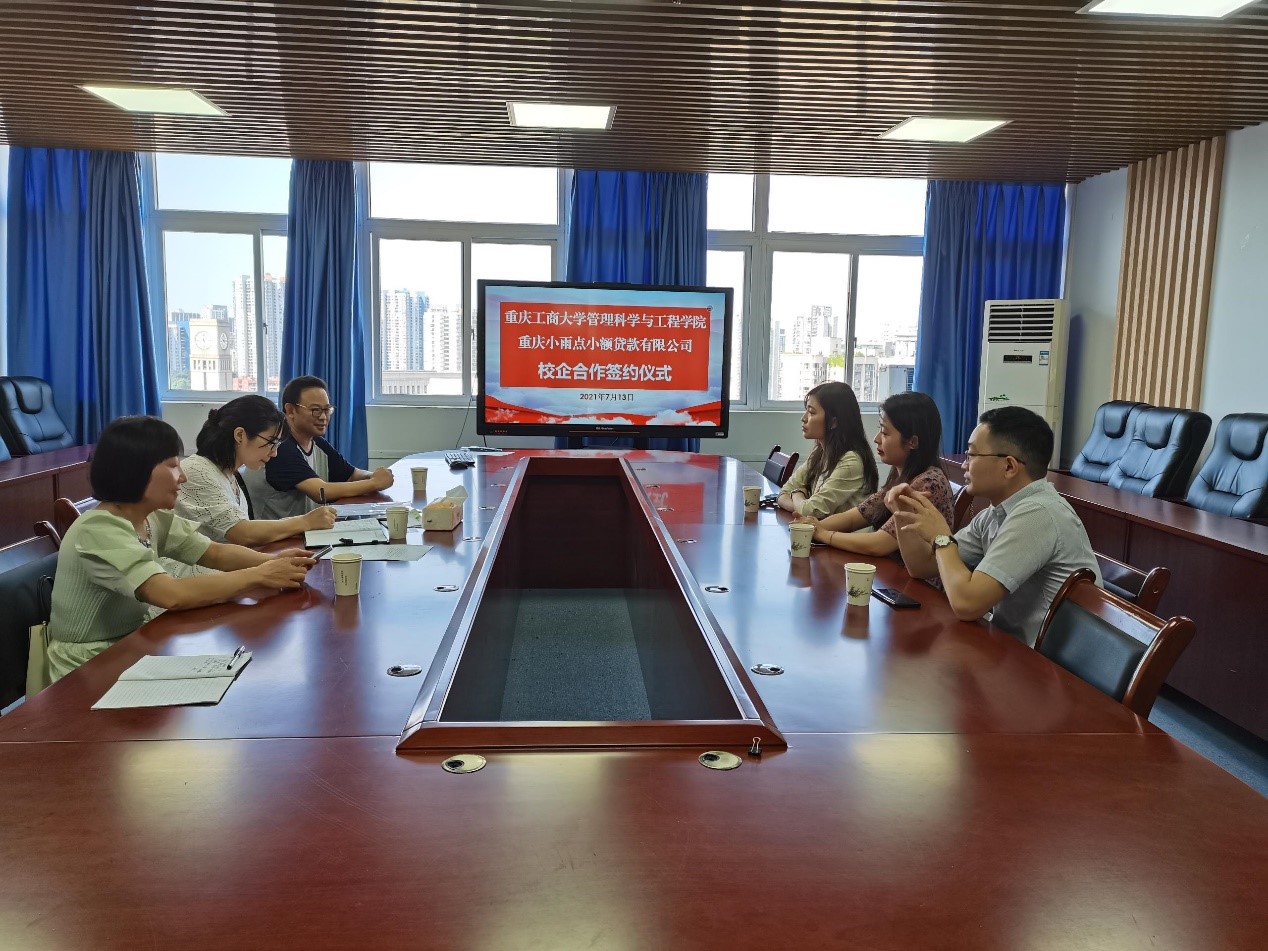 7月13日,重庆小雨点小额贷款有限公司(下称“小雨点有限公司”)人力资源总监张怡、招聘经理邱斌等一行三人来公司洽谈推进校企合作事宜。公司副经理陈久梅、信息管理系主任涂智寿教授、教师代表唐敏教授、信息管理系副主任梅远飞老师参加了洽谈。