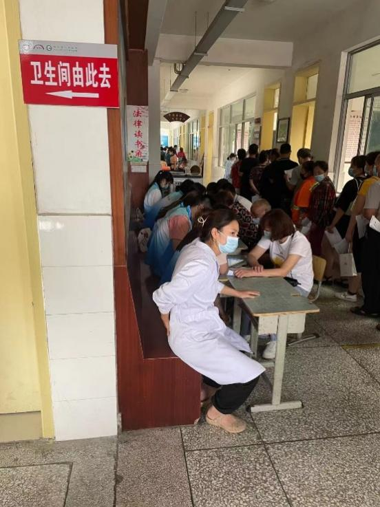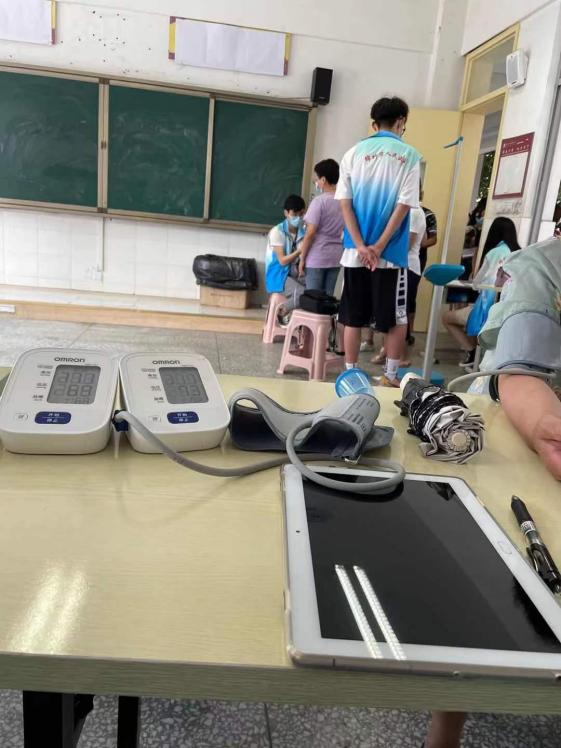 7月31日,太阳网集团tcy872219级员工袁艺芯来到南轩中学帮助医生进行当地居民的日常体检工作。