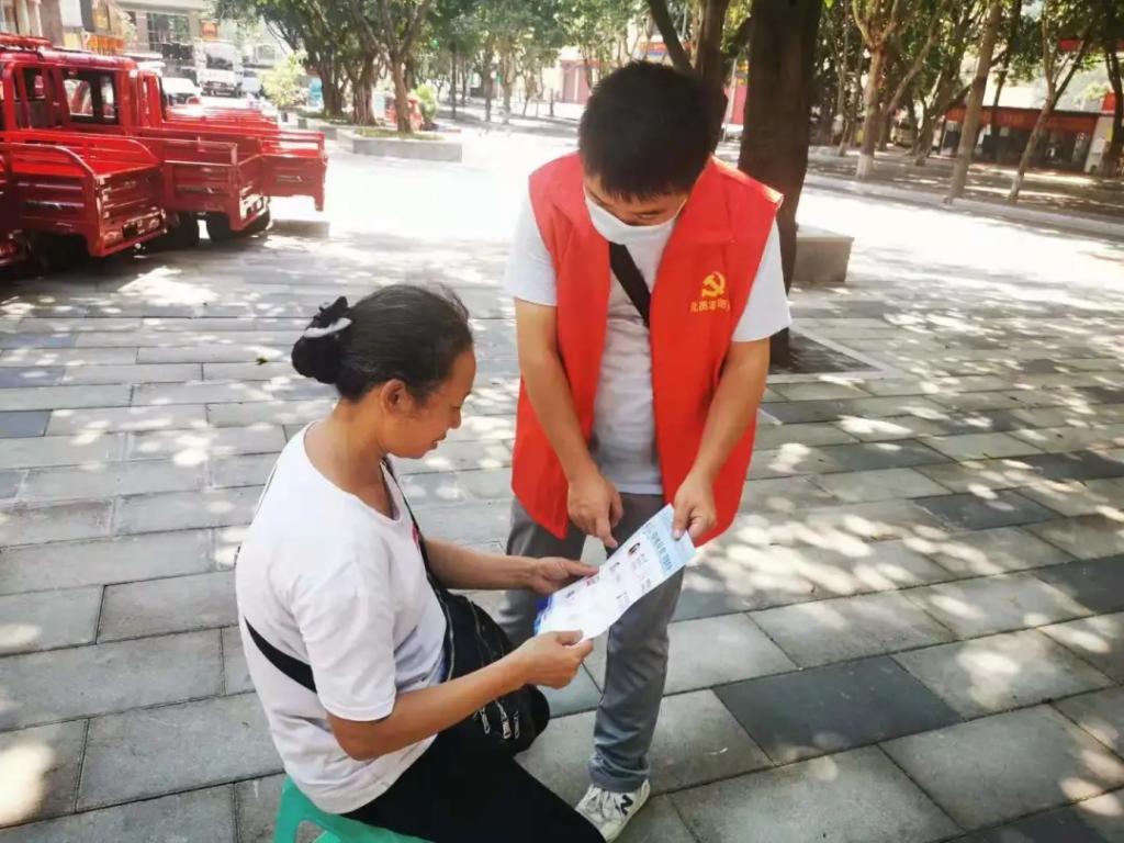 图为志愿者为居民宣传 蒋香佚 供图