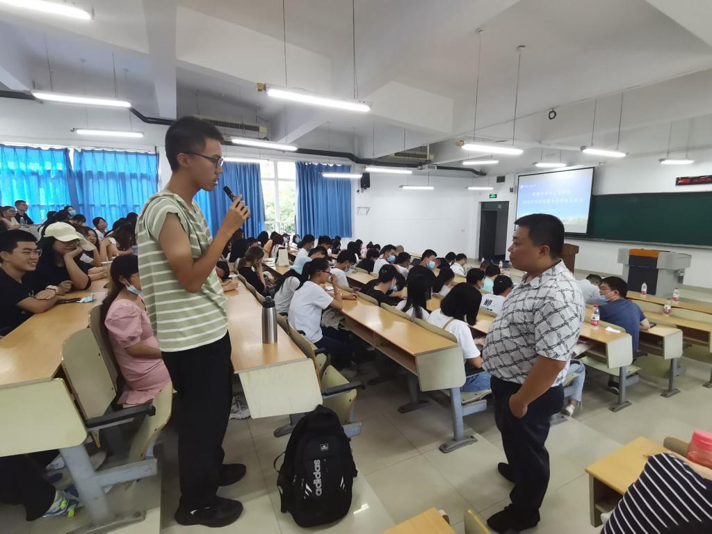 其次是教师、员工代表发言。教师代表黄辉老师强调,在未来三年的专业学习中,员工应当积极学习老师们的长处,实现思维碰撞,将知识内化于心、外化于行。员工代表黄同学对教师们的付出表达了感谢,并介绍了学习专业知识的方法。员工代表发言结束后,全体员工起立对老师们再次表达了真挚的教师节祝福。在最后的师生互动交流环节,许多同学就目前的专业学习以及未来发展等向老师们提出了诸多问题,例如“女生在物流管理就业上如何选择”、“如何将理论知识化为实践”等。老师们就员工问题一一耐心解答,并介绍了“考研”、“物流市场调研策划”、“流程优化管理”等未来学习方式以及发展选择。