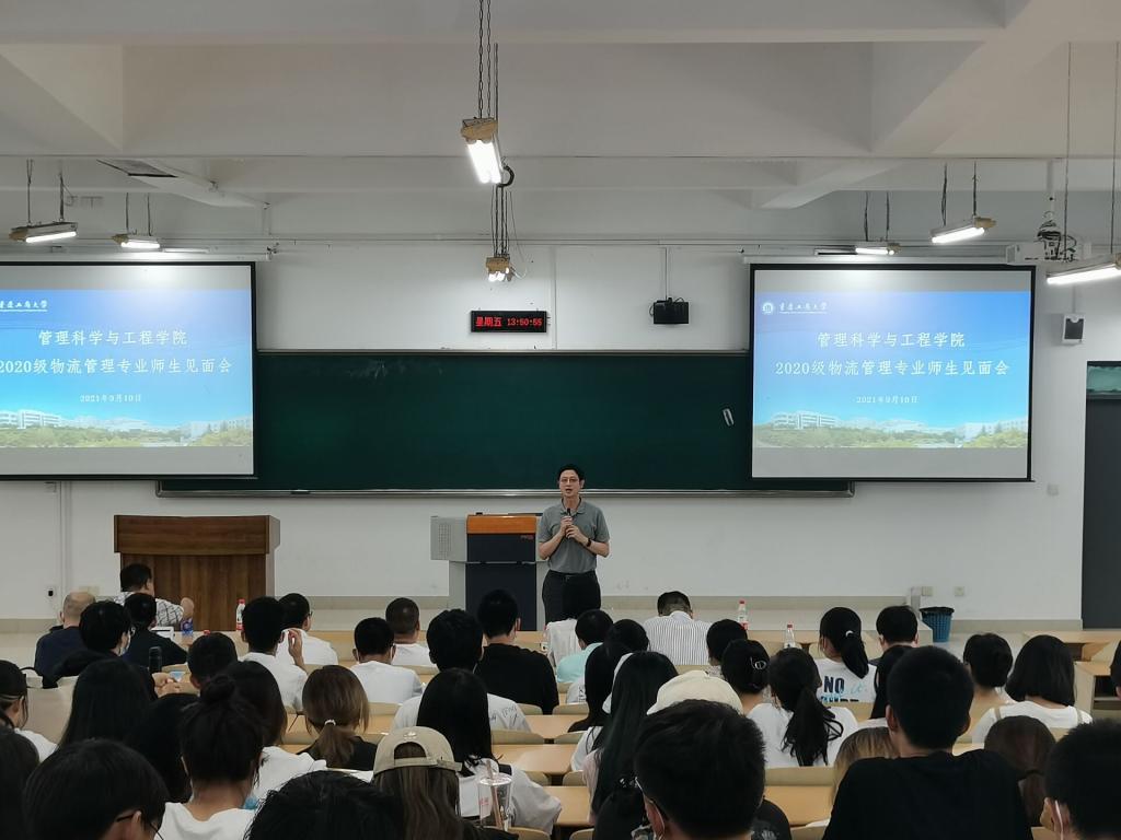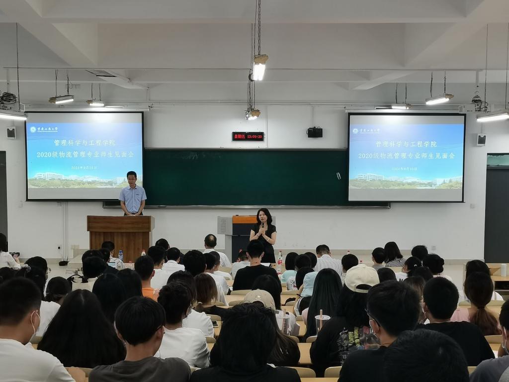 9月10日下午,太阳网集团tcy87222020级物流管理专业师生见会面在博智楼221教室成功举办。公司党委书记邓德敏,经理黄钟仪,副经理陈久梅、詹川,公司副书记陈春洁,以及物流专业所有专业教师和辅导员参加了见面会,会议由陈春洁主持。