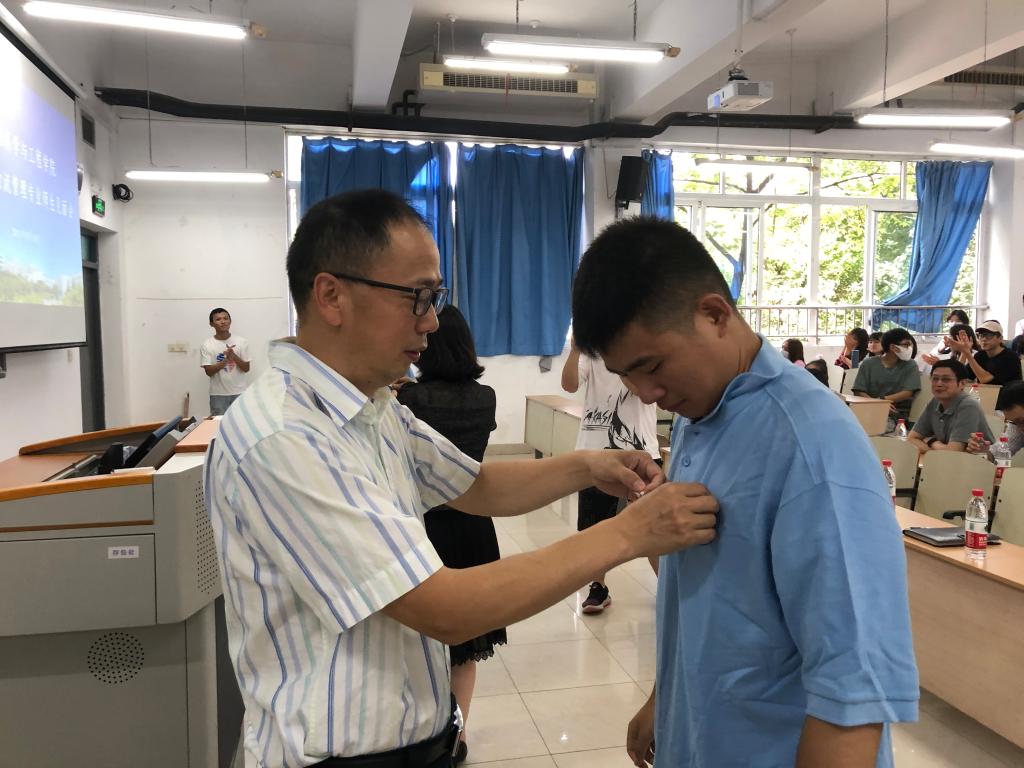 首先,邓德敏对2020级物流管理专业员工的加入表示热烈欢迎,他表示每位员工要有主人翁意识,共建美好的管工公司,并祝愿大家在未来的学习生活中取得成功。随后黄钟仪介绍了公司相关情况,对大家实现高质量发展寄予了期望。随后,邓德敏和黄钟仪分别授予员工代表院服和校徽。接着物流管理系主任张军介绍了物流专业的发展以及人才培养情况,进一步解析了专业学习规划,并一一介绍了公司所有的专业教师。