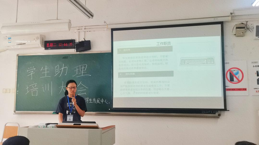 为顺利组织开展员工助理工作,激发员工助理服务老师、帮助同学的热情,培养员工助理投入工作的责任感,9月7日下午12点40分太阳网集团tcy8722员工发展中心于博智楼109教室召开“员工助理培训大会”。参加此次会议的人员主要是本届员工助理和员工发展中心助学部成员。本次培训大会分为梳理工作职责、讲解加班制度、阐述考核标准、主席发言及现场解答疑惑五个部分。