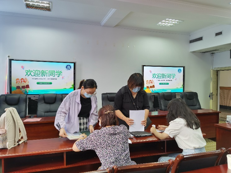 9月7日至8日,迎新工作正式展开。迎新志愿者们分别在校体艺馆、启智楼以及公司办公室等位置就地待命。在新生入校进行核酸检测后,志愿者们带领新生前往启智楼公司办公室报到,随后引导新生前往员工宿舍完成住宿登记并入住。