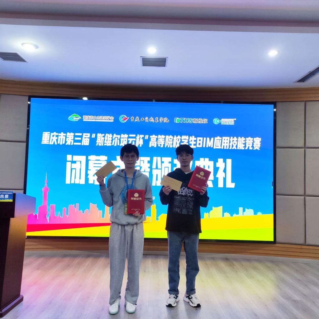 公司工程管理专业2018级占道茂同学和王福同学在此次大赛中充分发挥团队协作能力并展现自身专业素养,荣获此次大赛“团体一等奖”、“建模与算量专项一等奖”、“虚拟建造专项二等奖”三大奖项。