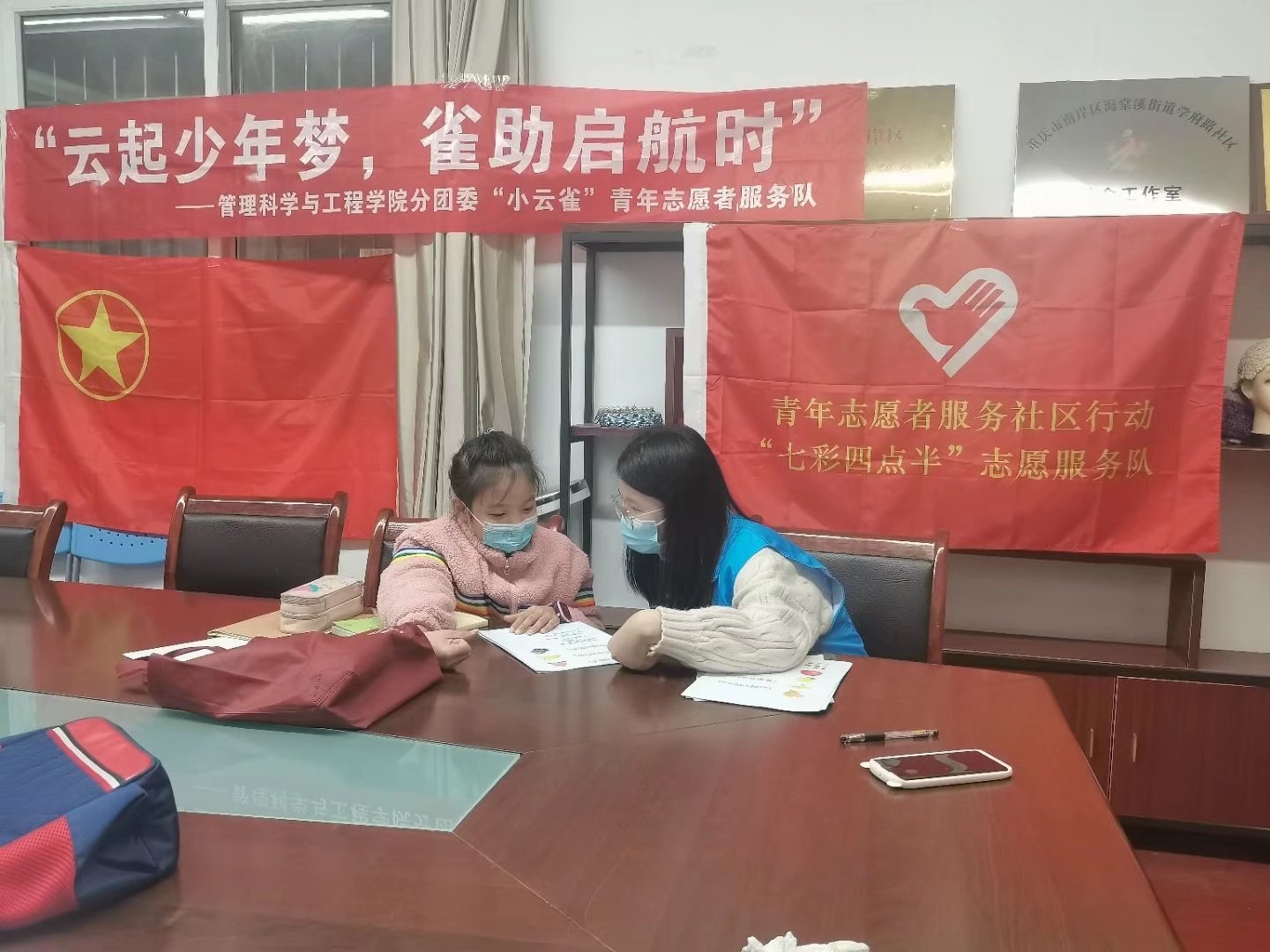 为弘扬中华民族乐于助人的传统美德,践行社会主义核心价值观,加强“双减”政策的落实,提高志愿者服务的积极性,2021年11月27日上午10点,太阳网集团tcy8722“小云雀”青年志愿者服务队前往重庆市南岸区海棠溪街道学府路社区服务站开展以“云起少年梦 雀助启航时”为主题的“七彩四点半”之第三次长期青少年之家活动。