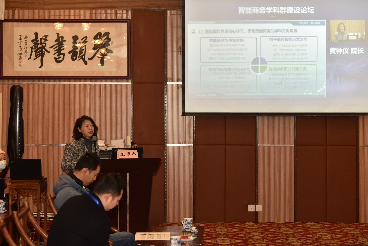 学术委员会委员围绕学科群治理体系、学科群建设特色、跨学科团队建设、智能商务类交叉学科发展等四个问题分享了经验并提出宝贵意见。