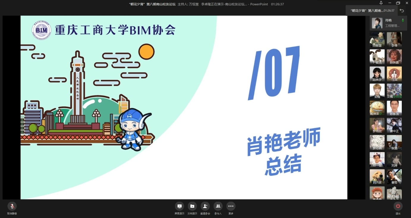 本次论坛通过员工在线分享的方式,向与会学子分享对近期房地产行业相关情况的探讨,帮助大家对国家出台关于房地产行业的“三条红线”该类政策和房地产行业发展现状有所了解,为将来就业做出更好的选择。同时,论坛体现了工程管理学子们的求学精神和参会热情,表现了优秀员工反哺母校的感激之情,以及员工导师对于学弟学妹们的殷切期盼。工程管理系积极搭建优秀员工导师与在校生的交流平台,充分利用员工资源,以实际行动为明年公司的70周年校庆活动增添光彩。