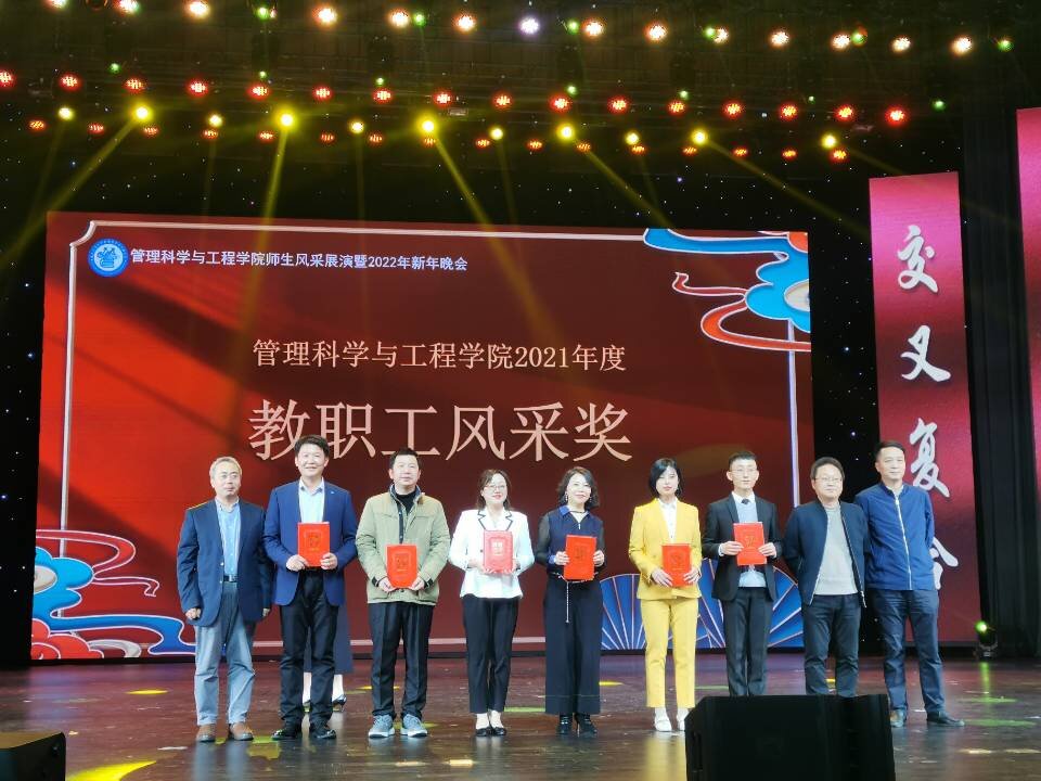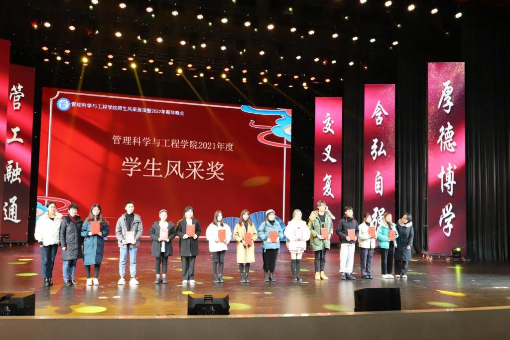 晚会还对2021年表现优异的师生进行了表彰。徐尹凤、郑文清等同学及小云雀服务队、BIM协会获得2021年度员工风采奖,曾波、向为民等教师获得2021年度徽商奖教奖。