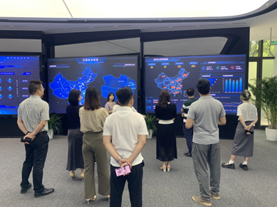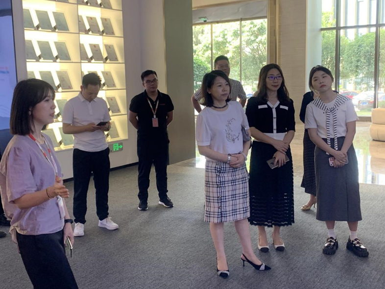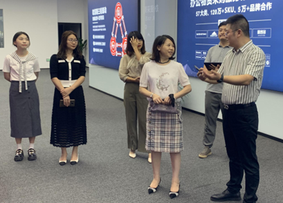 欧菲斯集团股份有限公司人力资源中心副总监万一对黄钟仪经理一行来访表示热烈欢迎,随后陪同参观了公司的线下数字展厅,并对公司开发和运营的企业购、企修通、福分通、品商通等平台进行了介绍。