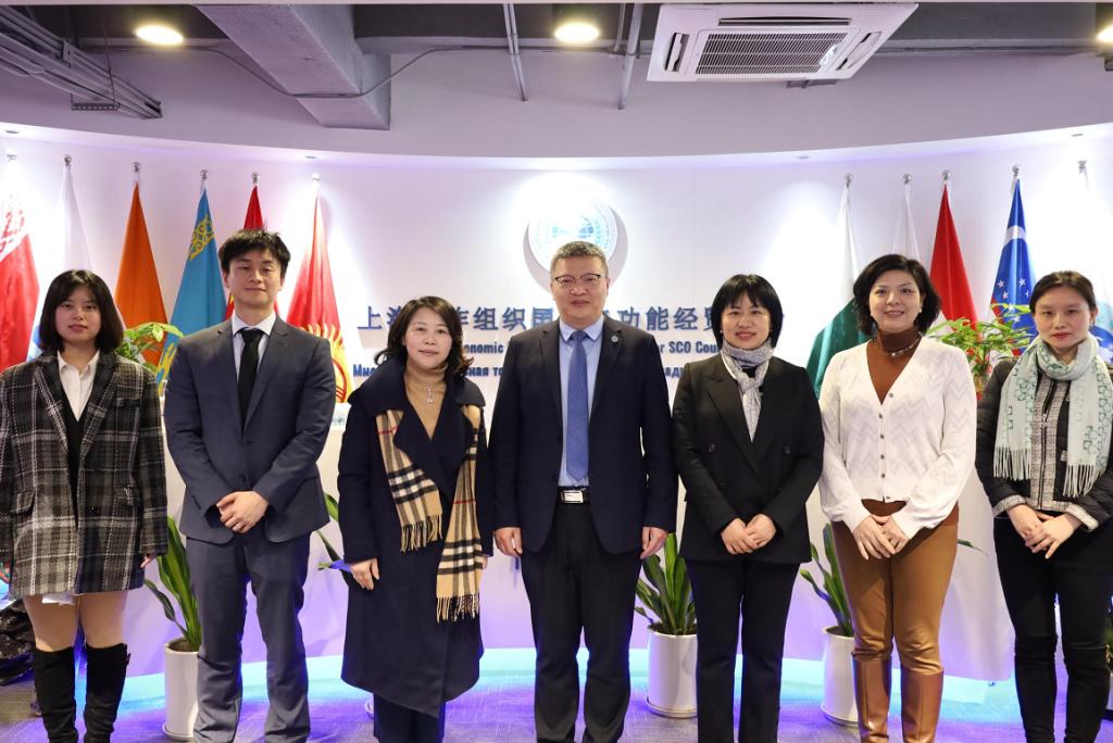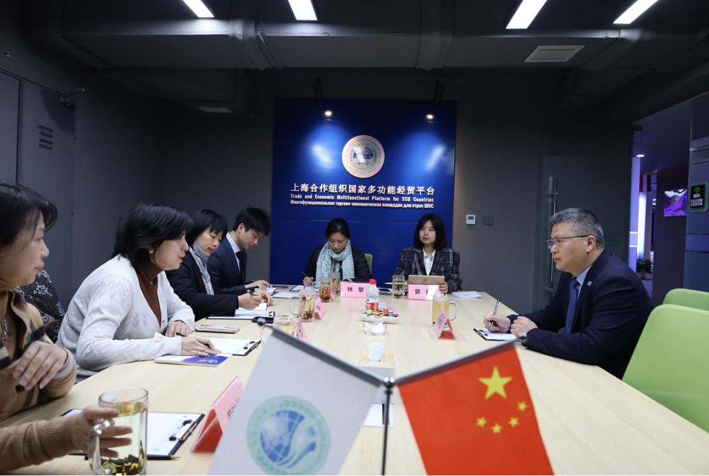 张光福副秘书长代表重庆市政协港澳台侨和外事委员会副主任、上海合作组织国家多功能经贸平台总干事胡开强欢迎调研团队一行。