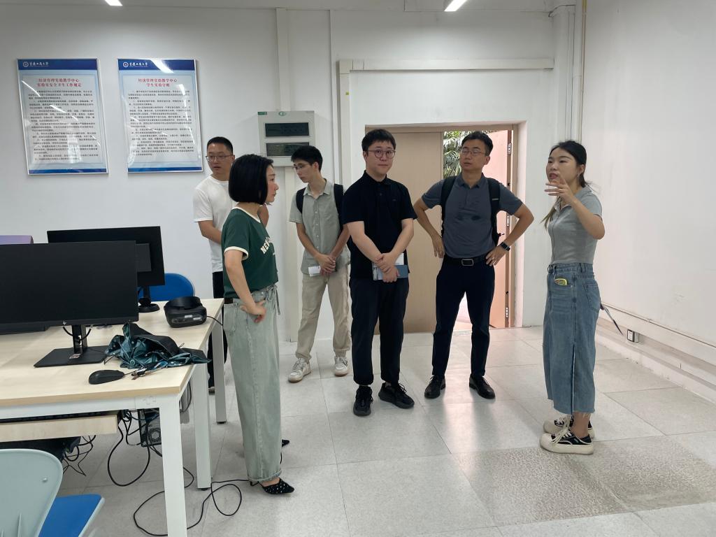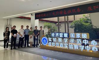 忽米网一行首先在参观了公司经管实验教育中心,重点调研了物流电商实验室,电子商务系副主任文悦、物流实验仿真教师陶熠向企业介绍了专业实训与虚拟仿真实验系统。
