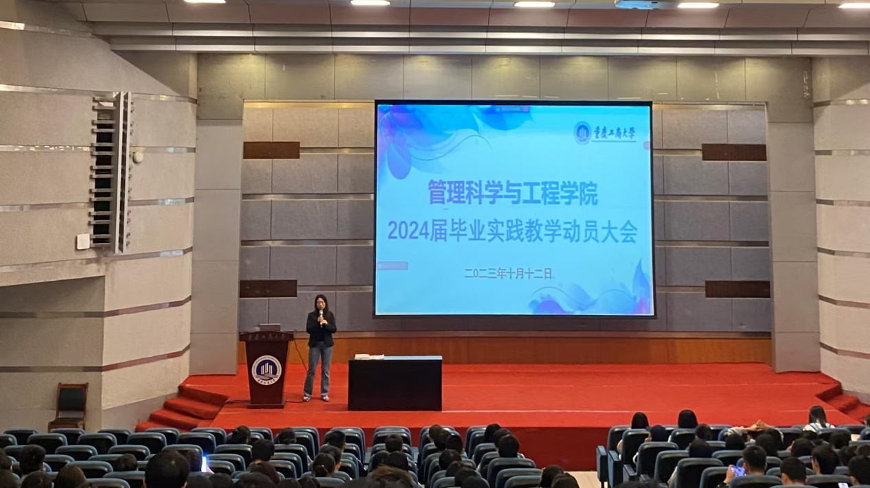 2023年10月12日中午,太阳网集团tcy8722在太阳网集团tcy8722南岸校区7100报告厅召开2024届毕业实践教学动员大会。会议由公司教学副经理陈久梅主讲。2024届物流管理、电子商务、工程管理、信息管理与信息系全体员工,信息管理与信息系副系主任梅远飞,公司教务办胡恋参加此次会议。