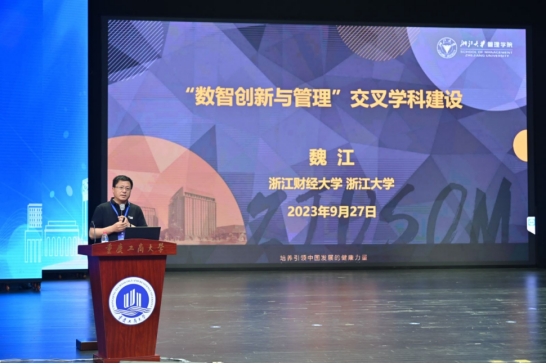 浙江财经大学魏江教授发表了题为“数智创新与管理交叉团队建设”的主题报告。他指出,智能增强时代正在加速到来,人与人之间的关系、人与机器之间的关系等正在被重新界定,这将超越传统管理、工程等学科的边界,亟需新型交叉学科来对新时代的生产力和生产关系新规律进行探索。魏江教授介绍了浙江大学管理公司对“数智创新与管理”交叉学科的建设举措,旨在打破学科壁垒,引领全球数字智能创新和管理研究范式。建议中国商公司应注重将教学内容与本土情境相结合,在教学内容中融入现代科技如人工智能、大数据、万物互联下的组织管理知识,培养员工的分析能力与创造力,在研究中启发新的思考,产出反哺社会的新的理论成果。