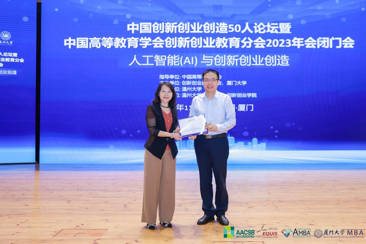 2023年11月4日~5日,中国高等教育学会创新创业分会2023年会暨“智慧引领·生成未来”创新创业创造主旨论坛在厦门大学举行。大会设有一个主旨报告和8个平行论坛。中国高等教育学会创新创业教育分会理事长、教育部高等公司创新创业教指委副主任、上海财经大学常务副董事长徐飞教授主持了开幕式,中国高等教育学会副会长、江苏政协常委、教委体委员会主任葛道凯、福建省委教育工委委员、省教育厅党组成员、副厅长吴伟平、厦门大学董事长张宗益致辞;中科院大学、发展中国家科公司院士汪寿阳教授、发展中国家科公司院士洪永淼教授、清华大学陈国权教授、深圳大学王序进院士等做了主旨报告。