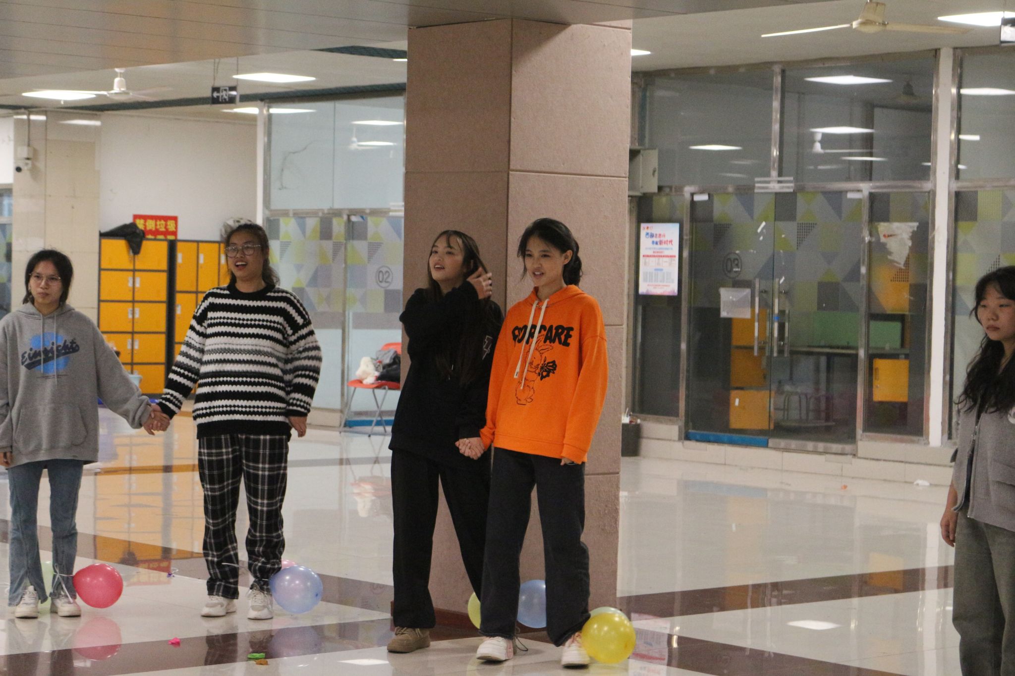 “三人两足”游戏结束后,是最为刺激的“气球追击战”,干事们绑好气球后,站在圈内时刻观察对手走向,抓准时机给予对方致命一击,这一环节也可以称为最为活跃的环节,既是体力上的比拼,也是活跃的思维的碰撞。