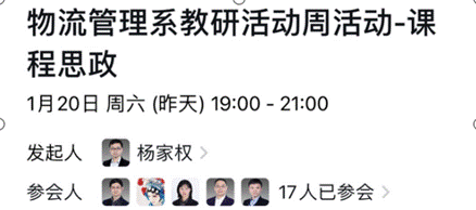 2024年1月20日,为进一步落实立德树人根本任务,探索课程思政的实现路径,根据公司“2023-2024学年第一学期教研活动周”的相关要求,结合物流管理专业实际,物流管理系全体党员和老师开展了课程思政能力专项培训活动,副系主任杨家权副教授主持此次会议。