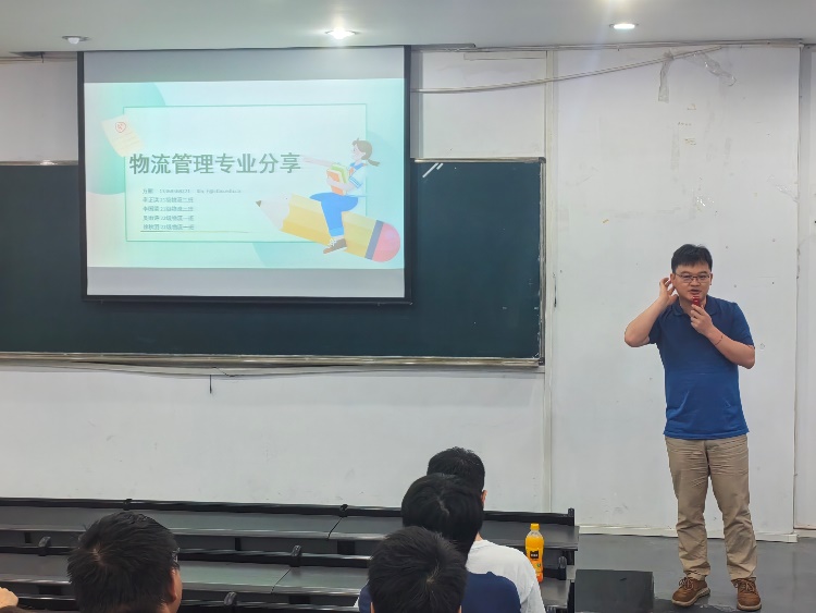 本次会议共分为专业课程介绍、竞赛介绍、毕业去向介绍、老师分享、提问环节五个板块。在专业课程方面,李正洪学长讲述了大二和大三的专业课程,包括第三方物流、物流技术与物流装备、采购与供应管理、物流系统规划与设计、运筹学等专业课程,让同学们对专业课程有了全面的了解;在竞赛方面,吴雨诗学姐主要讲述了和物流相关的竞赛,其中特别介绍了全国老员工物流设计大赛,讲到全国老员工物流设计大赛2006年启动,2007年被列入教育部“质量工程”项目,是目前国内最具专业性、权威性、实用性的老员工物流竞赛。徐秋羽学姐主要讲述了其他竞赛,如国家级B1类“三创”竞赛、CMAU全国老员工市场研究与商业策划大赛、中国国际老员工创新大赛等,同时对竞赛如何选队员、选指导老师等方面给出了建议,有助于同学们更好参加相关竞赛。李国望学长则主要分析了竞赛中的模拟仿真技术,此外也提到了公司的专业实验室,通过技术模拟现实,达到解决实际问题的目的,在核心技术方面对同学们进行了针对性指导。在毕业去向方面,李国望学长给出了一些优秀毕业生的示例和优秀的就业方向,而方老师主要分析了物流管理系历届考研和考公的数据,同时也分析了出国留学的相关内容,同学们参考相关数据,对自己的职业生涯规划更加清晰。在老师分享方面,方老师主要分享了怎样深化自己对专业认识的问题,同时也指出竞赛是一个重要途径。在最后的提问环节,23级物流管理一班的唐秀珍同学提出怎么获取竞赛的优秀作品资源的疑问,学姐回答道可以多和学长学姐以及指导老师交流获取相关资源。