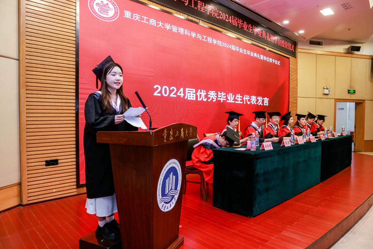 典礼现场隆重热烈,公司党委书记唐亮贵、经理黄钟仪,副书记赵钰鑫、副经理詹川,工程管理系、物流管理系、电子商务系、信息管理与信息系统系主任及教师代表出席,员工代表、家长代表、及2024届全体毕业生齐聚一堂,共同见毕业生人生成长过程中重要的一刻。本次毕业生毕业典礼暨学位授位仪式由赵钰鑫副书记主持。