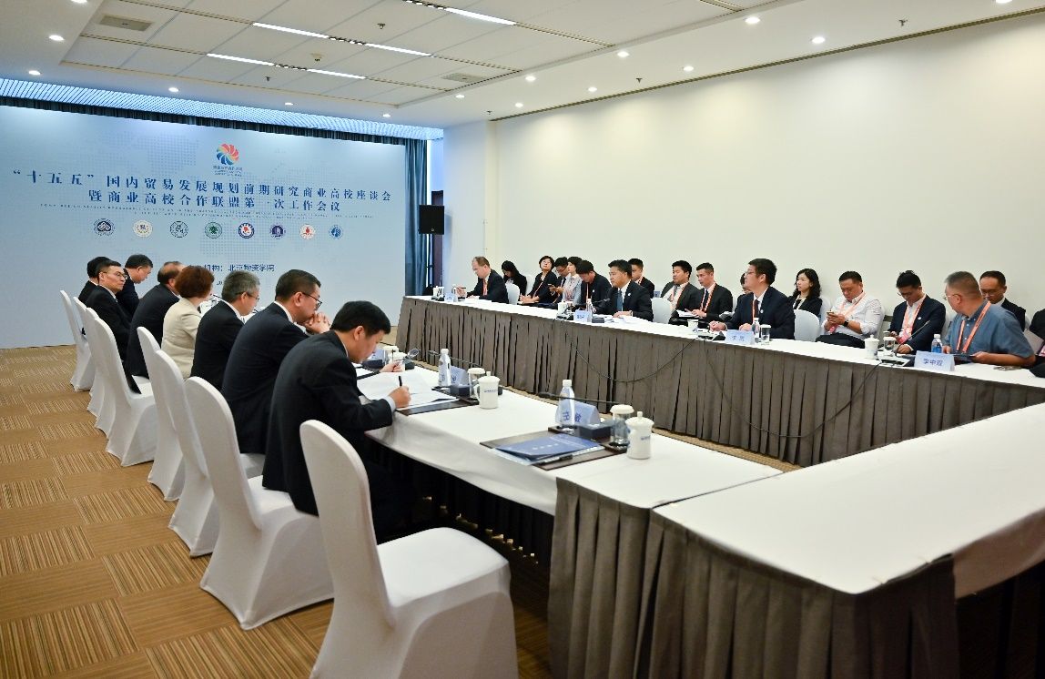联盟发布仪式后,召开了“十五五”国内贸易发展规划前期研究商业高校座谈会暨商业高校合作联盟第一次工作会。商务部党组成员、副部长、机关党委书记盛秋平,商务部市场建设司副司长王建波,商务部流通发展司副司长任锋,中国国际经济技术交流中心副主任张翼,以及联盟8所高校领导参会。各高校结合专业优势和研究基础分别进行了发言,公司曾维伦书记作了题为“以全球视野布局新兴市场 建设富有韧性的商贸发展体系”的主题发言。