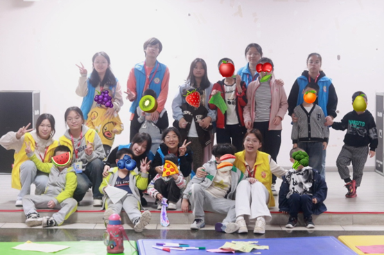 活动开始之前,志愿者们随老师布置活动现场,一同迎接小朋友们的到来,邀请小朋友们一起参加活动。《听到水果请拍手》作为开场热身小游戏,调动了小朋友们参与活动的积极性。随后志愿者们为每一位小朋友分发彩纸,并带领小朋友们一起画画,他们天马行空地发挥着自己的想象,拿起笔在纸上尽情挥洒,画出只属于他们的天真烂漫。
