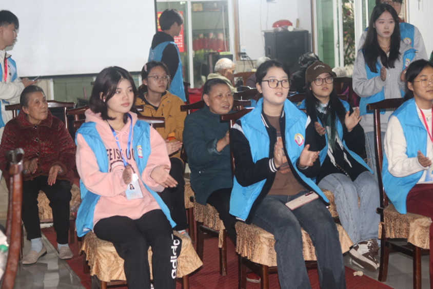 活动正式开始,志愿者们演唱《外婆的澎湖湾》《隐形的翅膀》,悠扬婉转的歌声犹如微风拂过心田,抚慰老人们的心灵。紧接着是一个手指活动操,老人们积极参与活动锻炼,增强了手指的灵活性和力量。