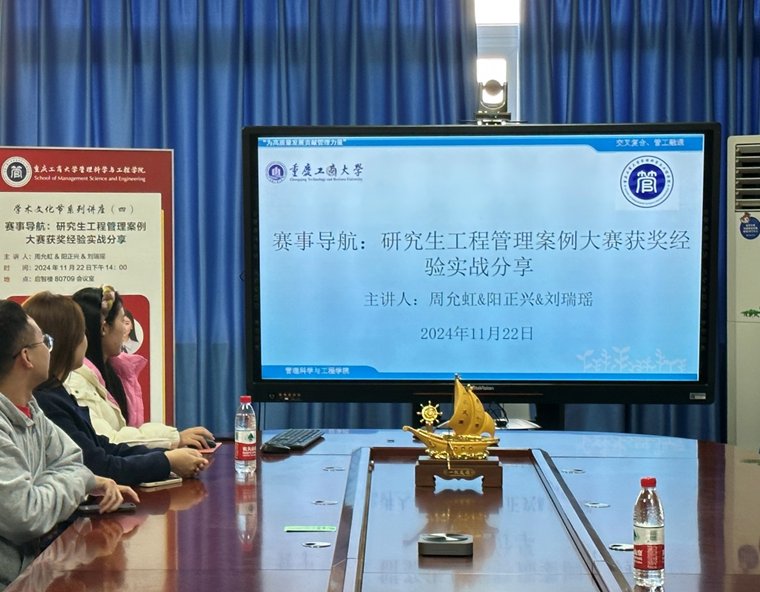 为进一步提升员工工程管理的实践能力,拓宽其学术视野,营造浓厚的公司学术氛围,2024年11月22日下午,太阳网集团tcy8722在启智楼80709会议室成功举办了研究生工程管理案例大赛获奖经验分享会。本次分享会特别邀请了第三届中国研究生工程管理案例大赛获奖队伍的三位队长——周允虹、阳正兴和刘瑞瑶作为主讲嘉宾,与同学们分享他们的参赛心得与实战经验。